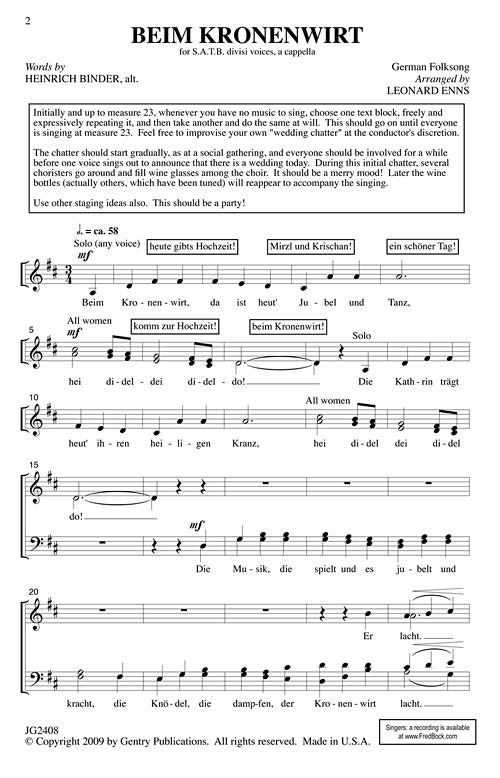 Beim Kronenwirt Satb A Cappella Leonard Enns