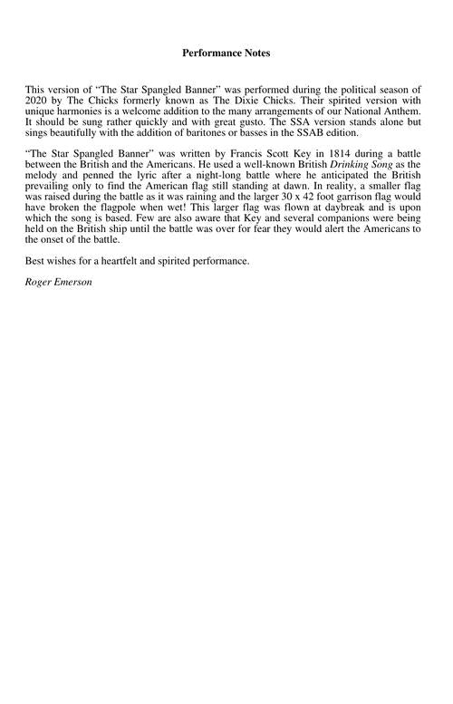 The Star Spangled BannerPublisher: Hal LeonardCategory: ChoralSeries: Pop Choral SeriesFormat: OctavoA fresh and unique take on the U.S. national anthem, The Chicks a cappella adaptation soars while remaining true to the source material. The country superstars...Regular price $26.99 -
