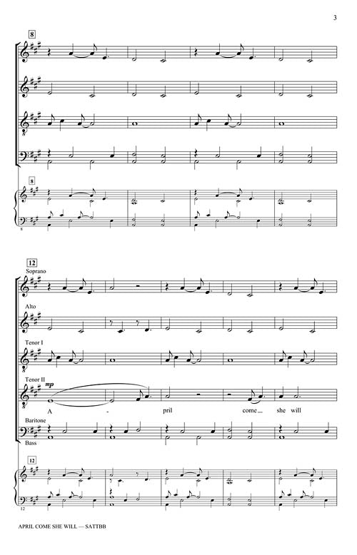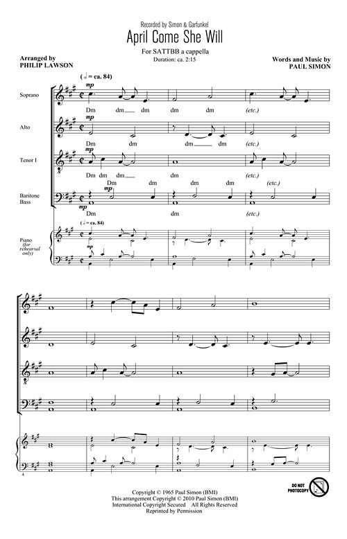 April Come She Will Sattbb A Cappella Simon Garfunkel
