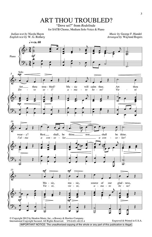 Art Thou Troubled Dove Sei Opera Workshop George Frideric Han