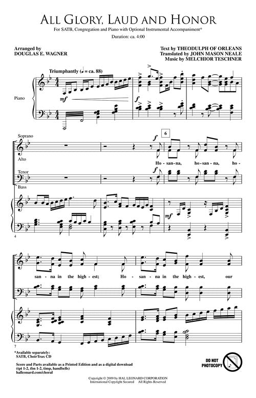 All Glory Laud And Honor Brookfield Easter Choral Satb Arranger