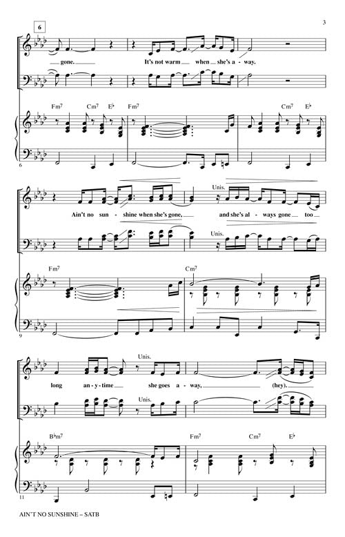 Aint No Sunshine Satb Pop Choral Series Bill Withers