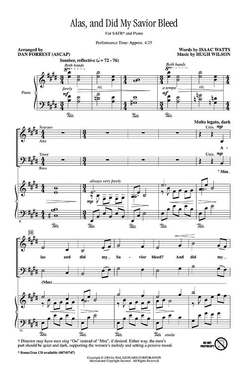 Alas And Did My Savior Bleed Brookfield Choral Series Satb Hugh