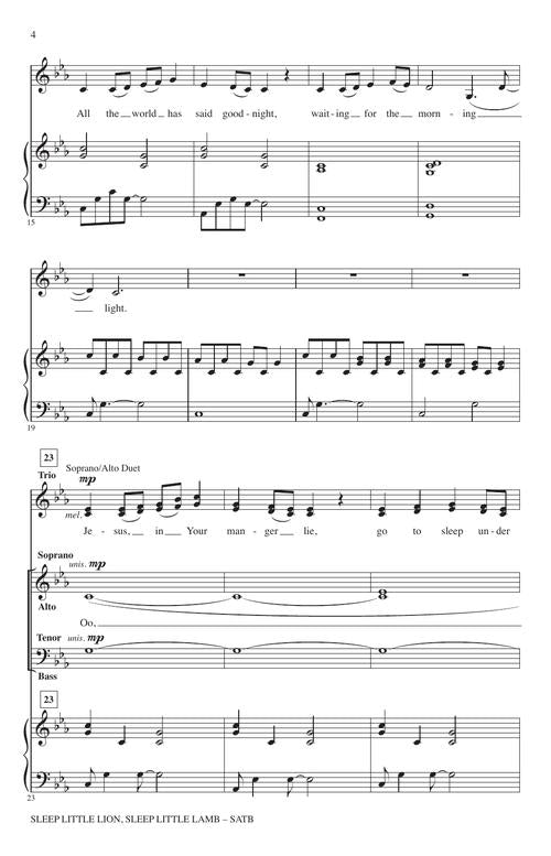 Sleep Little Lion, Sleep Little Lamb Publisher: Daybreak Music Category: Choral Series: Daybreak Christmas Choral Format: Octavo A profound text transforms a manger lullaby into a portrait of the Savior. Rich with poetic imagery and spiritual...Regular price $29.99 -