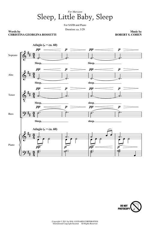 Sleep Little Baby Sleep Henry Leck Creating Artistry Satb Rober