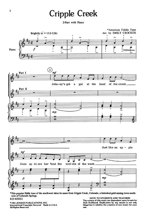 Cripple Creek 2-Part Arranger: Emily Crocker