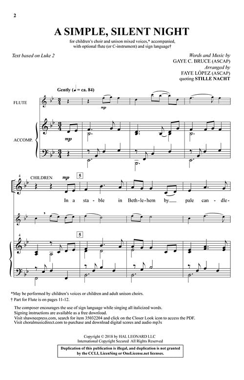 A Simple Silent Night Unison Choir Children Flute Gaye C Bruce