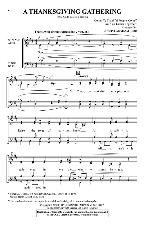 A Thanksgiving Gathering Satb A Cappella Arranger Joseph Graham