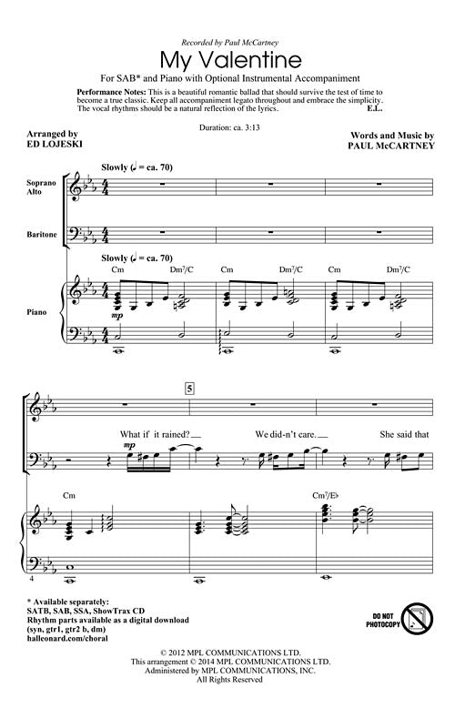 My Valentine Pop Choral Series Sab Paul Mccartney