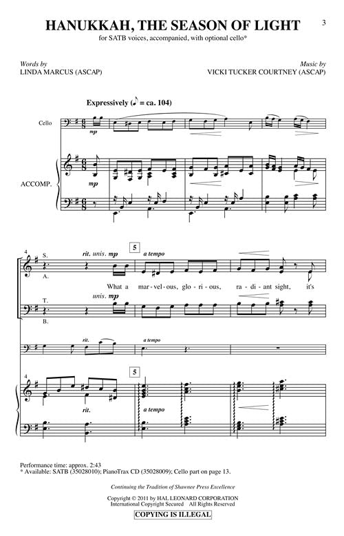 Hanukkah The Season Of Light Satb Vicki Tucker Courtney