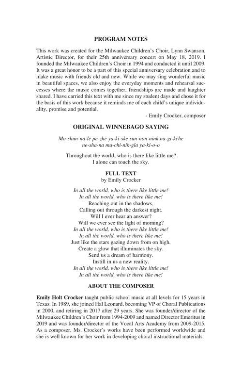 Who Is There Like MePublisher: Hal LeonardCategory: ChoralSeries: Henry Leck Creating ArtistryFormat: OctavoWritten for the 25th anniversary of the Milwaukee Children's Choir, this is yet another brilliant work by Emily Crocker. The text, based off of...Regular price $27.99 -
