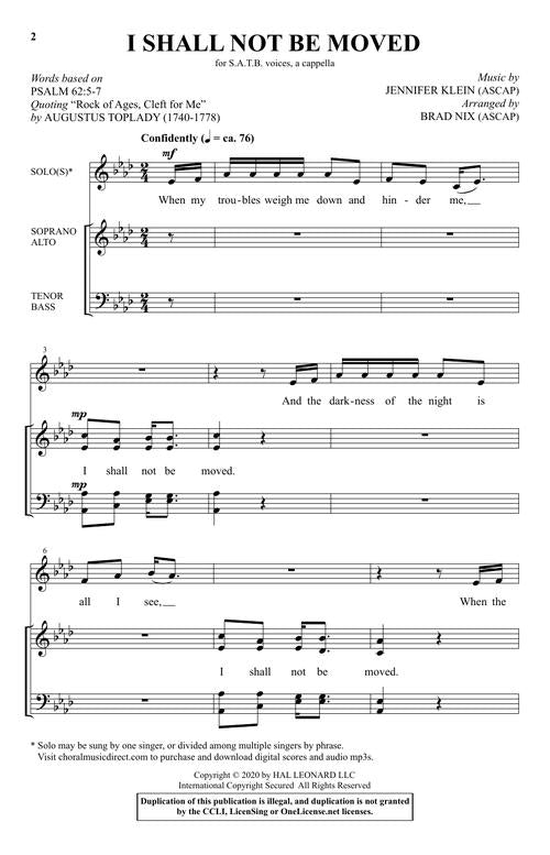 I Shall Not Be Moved SATB a cappella Jennifer Klein