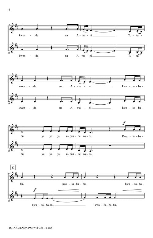 This Title Comes In Quantities Of Five (5) Copies(1 Order=5 Copies) Tutakwenda Octavo 2-Part a cappella Here is an original celebratory piece in Swahili based on Romans 8:31, carrying the message that we can move forward...Regular price $25.99 -
