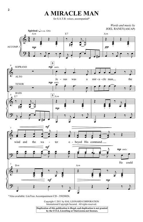 Uses: General, Lent, Youth Scripture: Hebrews 2:4; John 4:48; Acts 19:11; Psalm 135:9; Mark 16:20 The tastefully theatrical chorals of Joel Raney always invigorate worship moments and stretch our stylistic envelopes which allows churches to expand their worship vocabularies. Celebrating the miraculous wonders of Christ's ministry, this anthem seems right at home in a musical vernacular that sounds jazzy and traditional all at once. Attention to details of articulation, dynamics and interpretation will pay dividends musically and spiritually as you energize your group towards a deeper appreciation of the ministry of Jesus.