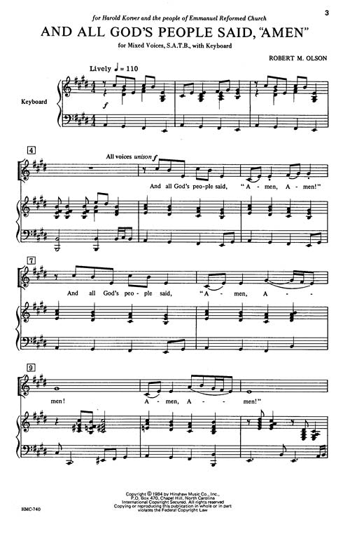 This anthem, written by Robert M. Olson for mixed voices (SATB) with keyboard accompaniment is suitable for a Medium Adult choir.