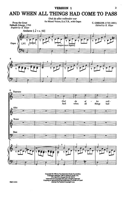 From our Moravian Music Foundation series. Some of the finest Moravian anthems were composed for Great Sabbath, Christ's day of rest between the Crucifixion and Resurrection. This octavo had two settings of this text of rest and hope. Duration - 00:03:44.