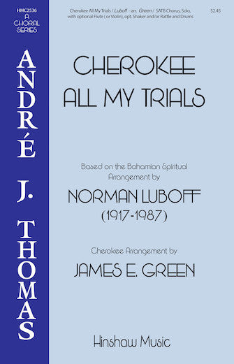 All My Trials is one of the most popular arrangements by choral master Norman Luboff. A Bahamian spiritual, composer James Green makes use of the Luboff arrangement and superimposes the language and stylistic characteristics of the Cherokee Native Americans. Scored for SATB chorus, solo, C instrument, and optional percussion, try it for American Music Month.