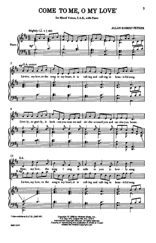 A light, playful love song - easy to work up - has a magical quality that stays with singers and audience alike. Duration - 00:01:56.