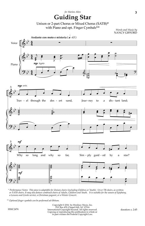 This is a perfect Epiphany piece. The versatile voicing makes it accessible for choirs of all ages and abilities. Difficulty Level: Easy