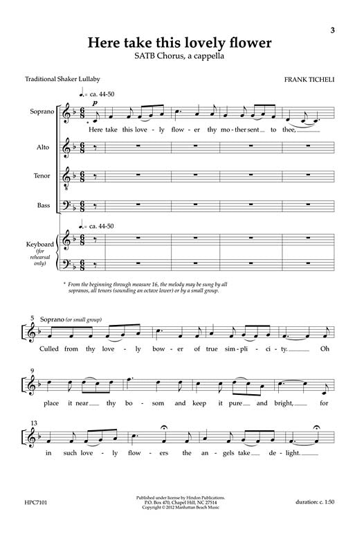 This simple piece is taken from a large body of traditional Shaker lullabies. Most tunes were sung in unison and were unaccompanied like the first statement from this arrangement. Perfect for a spring concert coupled with early English madrigals or contemporary American songs. Difficulty Level: Medium Adult.