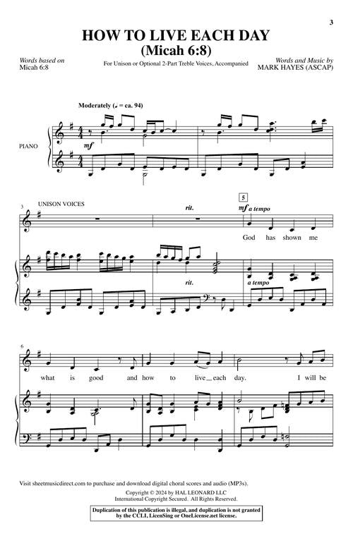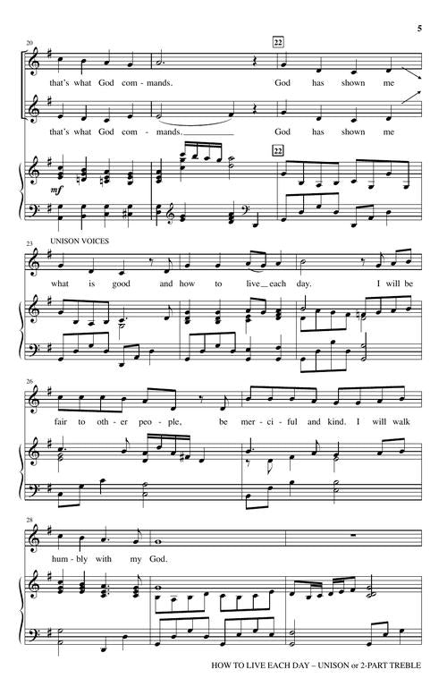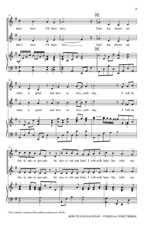 Micah 6:8 teaches us how to live each day: treat others fairly, share kindness and love, and walk humbly with God. The anthem's refrain highlights this powerful message and helps to seal these truths in the hearts of singers and listeners alike. Sing the piece in its entirety or see the note within for presenting a shorter version of the song.