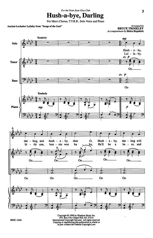 Scottish lullaby arranged for men's voices and solo. Difficulty Level: Medium Adult. Duration - 00:03:21.