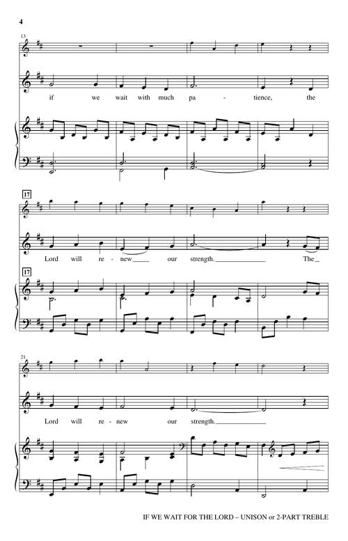 Flowing and gentle, this inspirational Scripture anthem reminds us that when we place our trust in the Lord we will find strength and renewal. The anthem's rolling 3/4 meter and lovely piano accompaniment provide a strong singing foundation for choirs of all ages, especially older elementary choirs. A short quotation of the hymn, I Love Thee, helps bring the piece to a touching conclusion. Available separately: Unison/opt. 2-Part Treble, CelebrationTrax CD. Duration: ca. 2:29