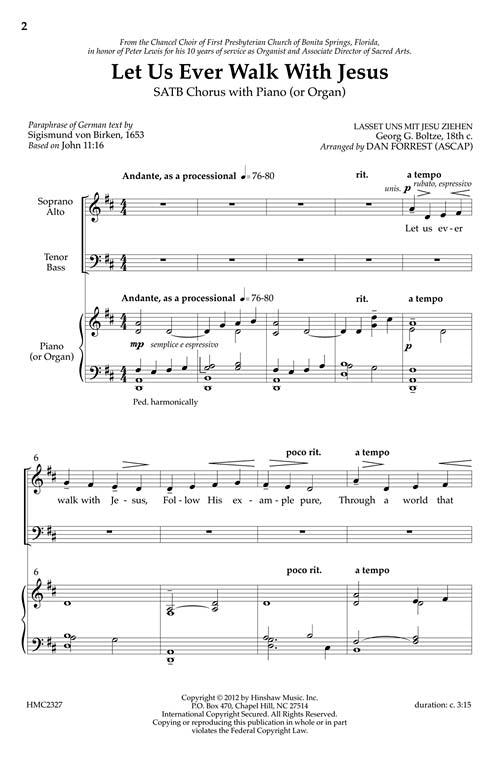 This piece belongs in every church choir library. Dan Forrest has taken a 17th century German tune, performed his magic and provided us with a relatively simple arrangement for mixed chorus with piano or organ. This would be perfect for the Sunday following Easter. Difficulty Level: Medium Adult.