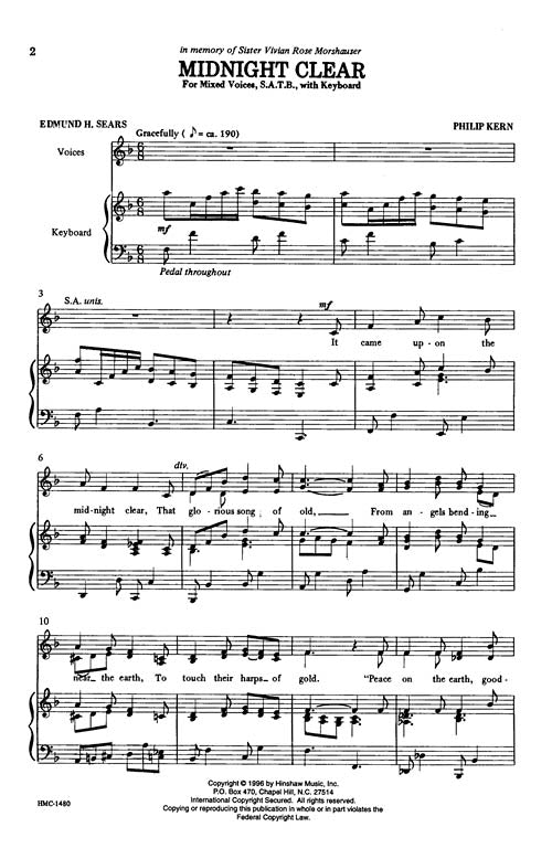 This original melody set to the classic Christmas carol It Came Upon a Midnight Clear, is a fabulous new addition to any Christmas Concert. Difficulty Level: Medium Adult. Duration - 00:03:00.