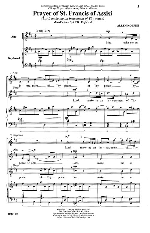 This inspired prayer has been set many times. Here, the masterful craft of Allen Koepke has an unusually tight connection between music and text. Difficulty Level: Medium Adult. Duration - 00:03:30.