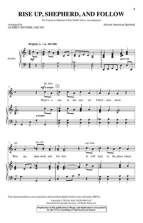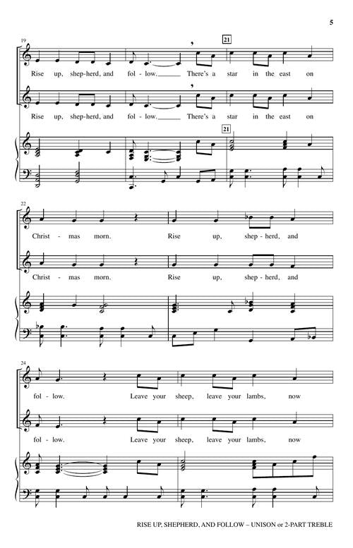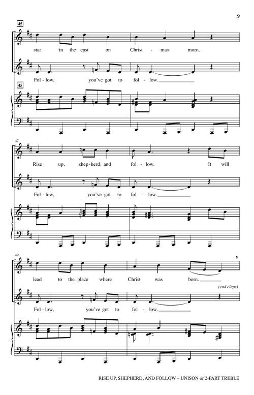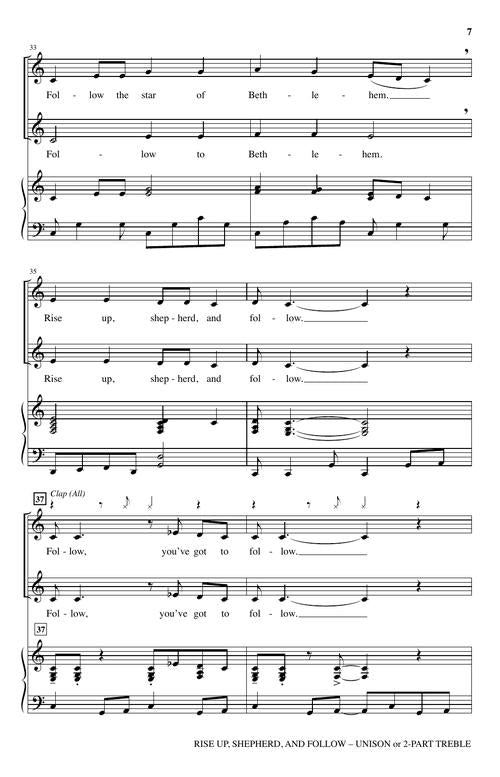 This energetic arrangement of the popular Christmas spiritual highlights the invitation to follow the star and find the newborn King. The familiar melody comes alive with a supportive piano accompaniment and jubilant hand claps that enhance the celebratory mood. Optional solos give young singers a chance to shine!