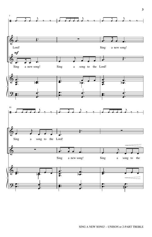 Unison or budding 2-part choirs will find great success with this song of exaltation that invites everyone to sing a new song to the Lord! Echo singing and limited vocal harmony offer developing choirs a chance to experience the first steps toward part-singing. An optional drum part elevates the exuberant quality of this well-crafted piece. Available separately: Unison/opt. 2-Part Treble, CelebrationTrax CD. Duration: ca. 2:33