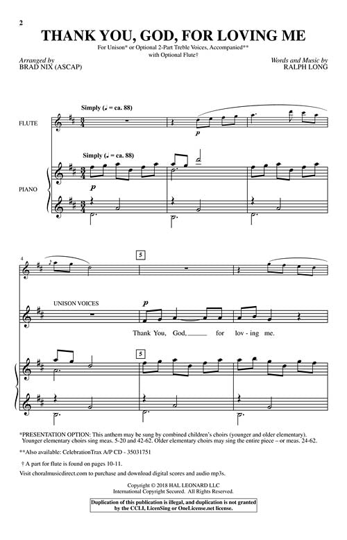 Written from a child's perspective, this lovely thanksgiving anthem expresses gratitude for God's love, care, and countless blessings. Optional flute and a gentle piano part softly surround the child-like melody that can be sung by combined younger and older elementary choirs or by older elementary choirs only. Available separately: CelebrationTrax CD. Duration: ca. 2:16