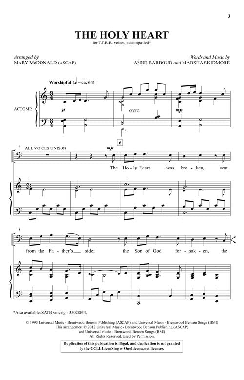 Uses: Lent, Holy Week, Pentecost Scripture: Hosea 11:1-9; Isaiah 12:3; Ezekiel 34:11-16 This sacred song takes us on a journey into the heart of Christ's mercy and grace. The music has the sonority of a folk hymn and yet there is fresh quality in the sound. Crafted to perfection, this arrangement uses the richness of the choir to go from the whispered silence to soaring crescendos of praise. Available separately: SATB, TTBB. Duration: ca. 4:15.