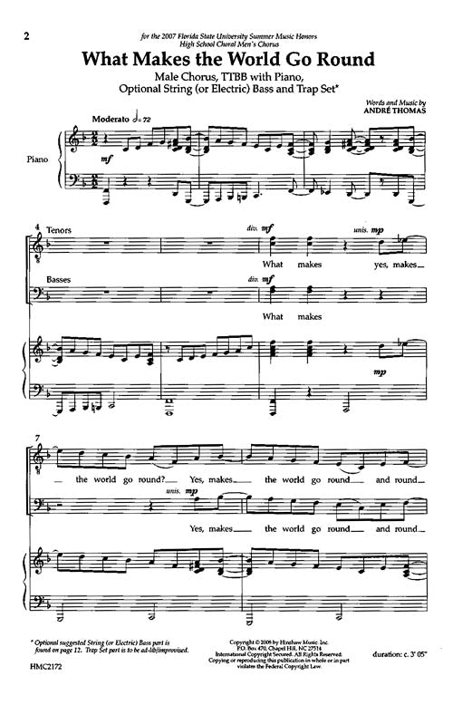 This is an incredible addition to the body of male chorus literature. Distinctively Andre Thomas, the choral writing is excellent, the text is captivating, and the piano part is highly energetic. Optional instruments include electric bass and trap set. Try it with high school, college, or community chorus men. Difficulty Level: Medium Middle School/High School Or Easy Adult.