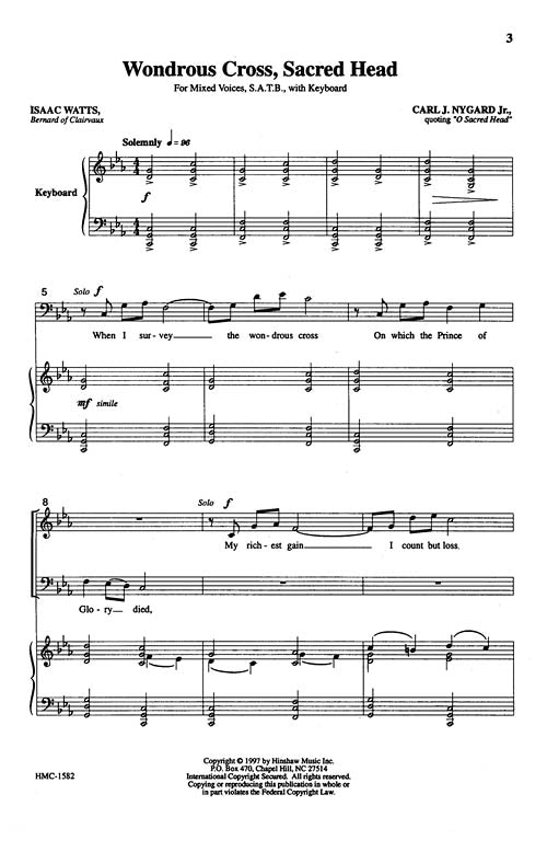 Perfect for the Lenten season, this solemn piece by Carl Nygard is for mixed voices with solos and keyboard. Difficulty Level: Medium Adult. Duration - 00:03:21.