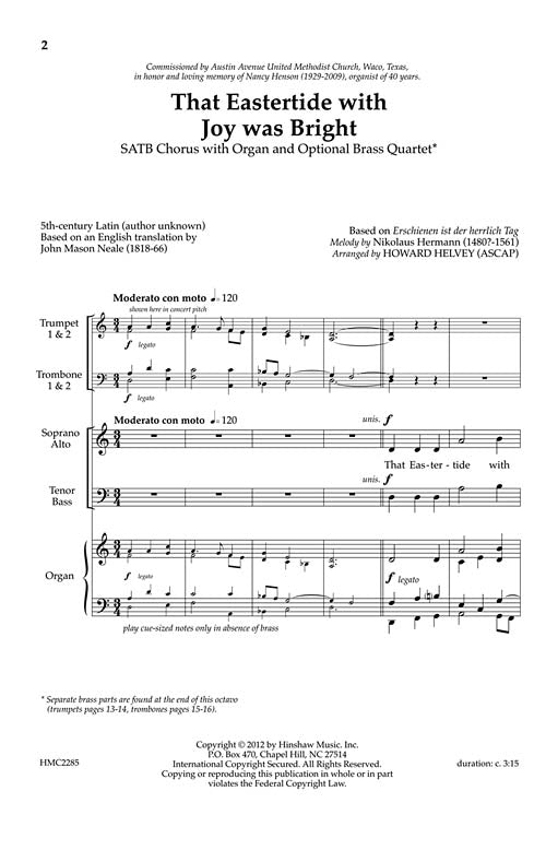 That Eastertide With Joy Was Bright Satb Arranger Howard Helvey