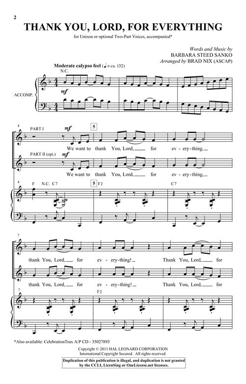 Thank You Lord For Everything Unison 2 Part Treble Barbara Stee