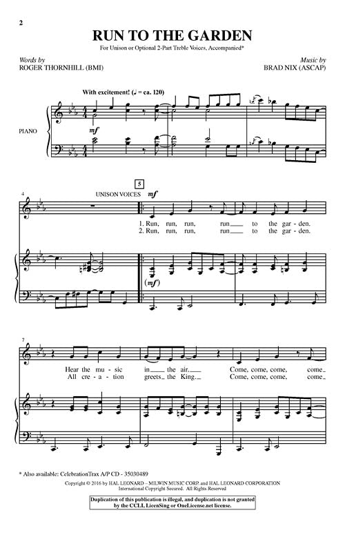 Run To The Garden Unison 2 Part Treble Brad Nix