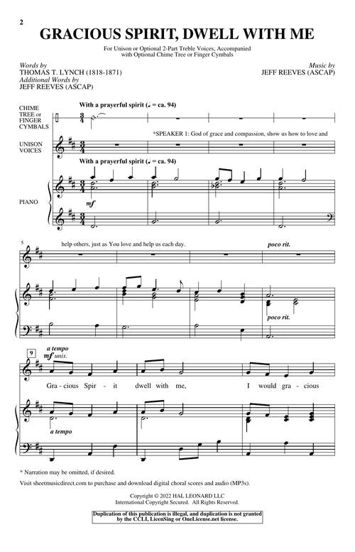 Gracious Spirit Dwell With Me Unison 2 Part Treble