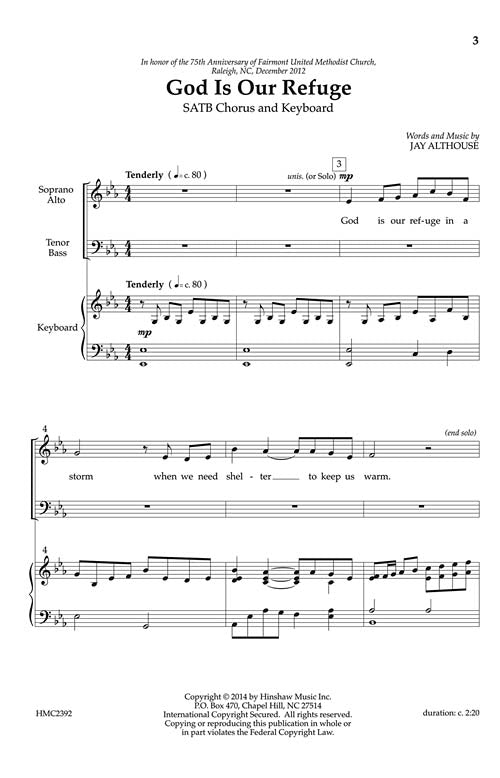 God Is Our Refuge Satb Jay Althouse