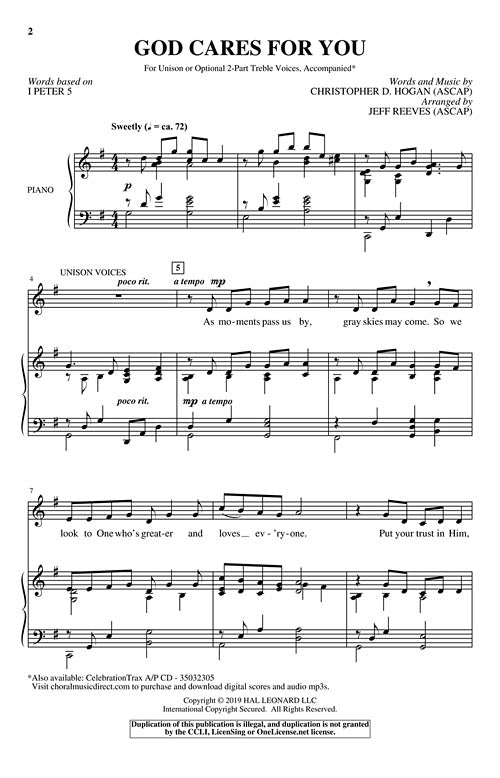 God Cares For You Unison 2 Part Treble Christopher D Hogan