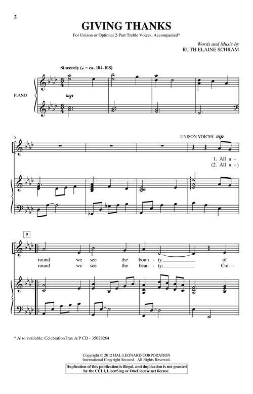 Giving Thanks Unison 2 Part Treble Ruth Elaine Schram