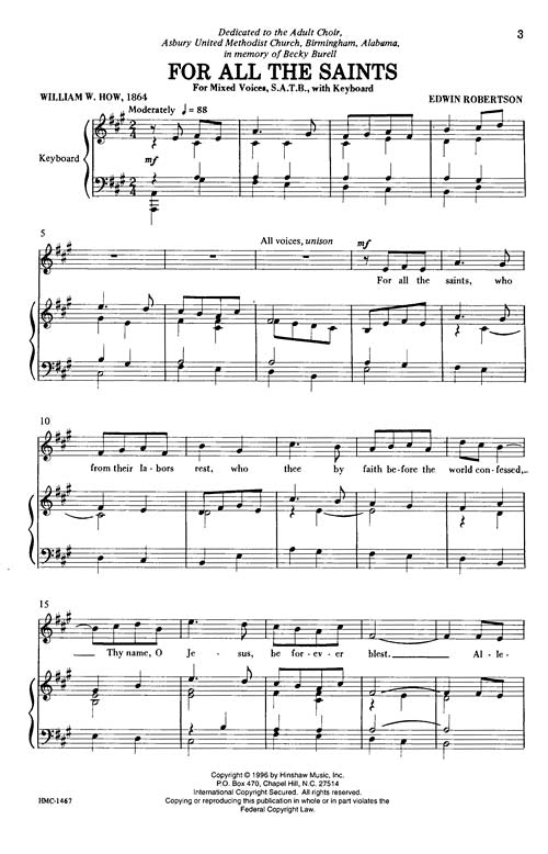 For All The Saints Satb Edwin Robertson