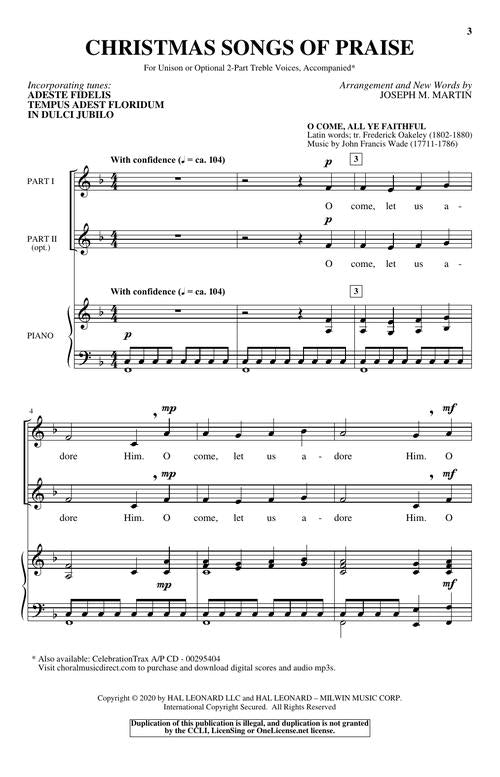 Christmas Songs Of Praise Unison 2 Part Treble