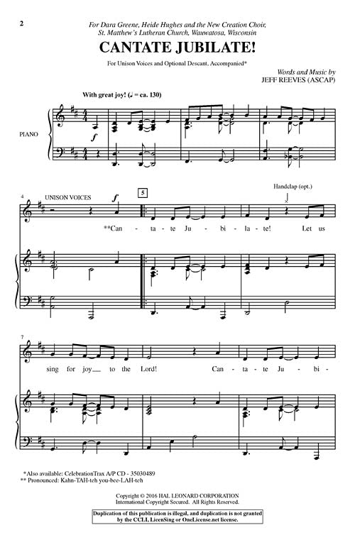 Cantate Jubilate Unison 2 Part Treble Jeff Reeves