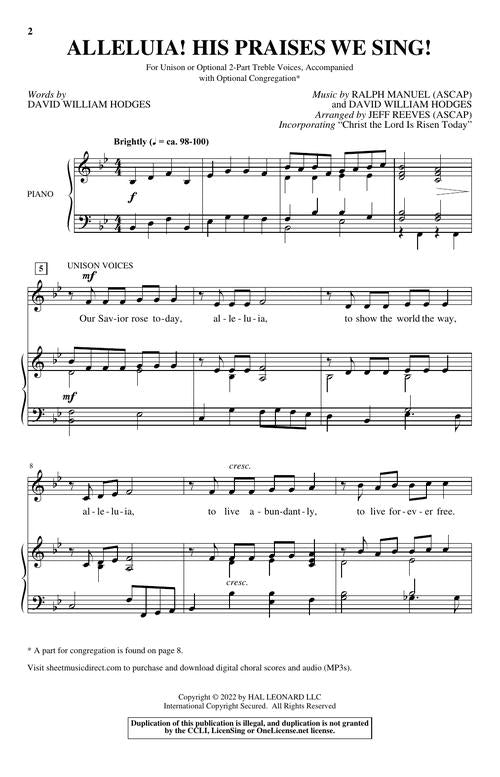 Alleluia His Praises We Sing Unison 2 Part Treble