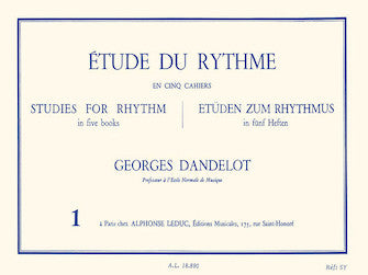 Étude du Rythme is an educational tool proposed by Georges Dandelot (1895-1975), a French composer, following the concept that rhythm is the foundation on which melody and harmony are then layered. It was conceived to progressively teach musicians how to deal with complicated rhythms such as those used by Bartok or Ravel. This volume is the first of five composing a step-by-step method to learn and master rhythm in music. It covers basics and simple melodies; the second volume introduces more complexity on the same concept, then the third one should help pianists to play different rhythms with each hand. Volumes four and five use complex combinations of rhythms and melody with binary and tertiary tempos.
