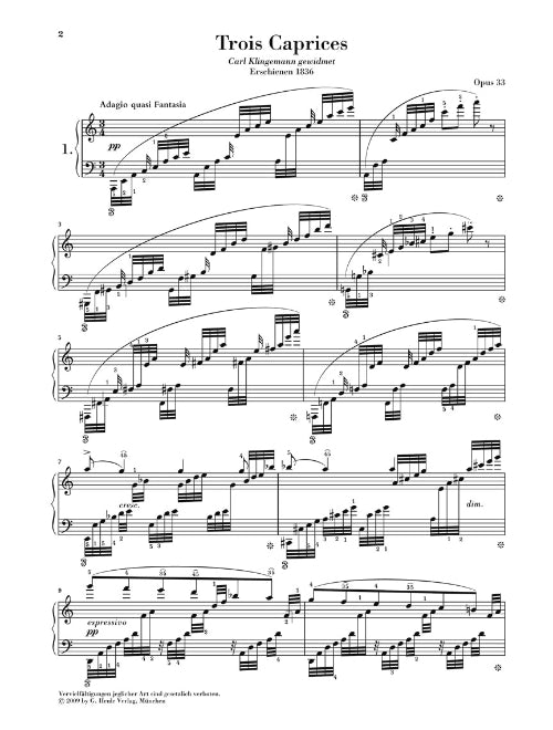 2009 was Mendelssohn's anniversary year and that occasioned Henle to publish in addition to the already existing Songs without Words (HL 51480327), nearly all of his piano compostitions in two new extensive volumes (HL 51480860 and HL 51480861). All of the works have been meticulously revised and extensive commentaries reflect the latest in scholarly research. Thus we are able to offer a comprehensive Urtext edition of Mendelssohn's piano works that is unique in this form. It replaces our previous volume of selected works (HL 51480281). In addition, Mendelssohn's piano works that are most often played (op. 14, 16, 54 and 72) are also available in affordable single editions.