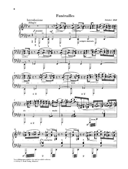 Liszt's Funérailles is a broadly conceived, virtuoso funeral march that has found a permanent place in the repertoire of all great pianists while remaining within the reach of talented amateurs. This separate print from Liszt's cycle Harmonies poétiques et religieuses (published by Henle in HN 639) opens with a new preface by the editor devoted specifically to Funérailles. Critical comments on the sources and on peculiarities of the musical text can be found at the end of the volume.